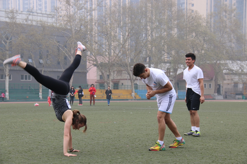 随着第一项女子100米的鸣枪起跑,运动会各个项目的比赛正式拉开帷幕,短、中长跑、跳远等项目随后依次有序展开。同场竞技的中外学生各显其能、你争我赶,场面激动人心、精彩纷呈。来自俄罗斯的安力在跳远比赛中成绩优异;来自喀麦隆的半雪在女子二百米中摘得桂冠;来自美国的安毅在男子1500米中夺得第一名。中国学生也不甘落后,2012级对外汉语班蔡宇红取得女子跳远第一名,陈荣在男子100米比赛中名列前茅。运动员们在赛场上发扬着奥林匹克精神,他们协作互助,奋勇争先,取得了傲人的成绩。