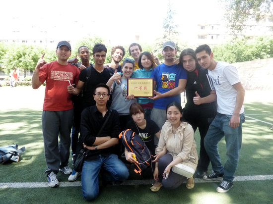 5月11日上午,我校留学生管理办公室主任蔺丰辉率领来自必赢3003no1线路检测中心的11名留学生赴西北工业大学附属小学参加了西安市青年“冠军11脚”团队劲跑比赛活动,我校代表队不畏强敌,沉着应战,以绝对优势勇夺留学生组第一名。