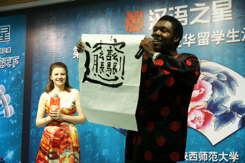 我校必赢3003no1线路检测中心选派的留学生中有7名进入了面试环节,其中美国的思远自编自演了情景剧《忐忑》,并在其中穿插了魔术和幽默故事,让大家捧腹;韩国留学生朴辅仁则展示了自己功力深厚的书法作品,并以自己对中国太极拳、书法及道教文化的全面而深入的理解,给评委留下了深刻的印象。而越南留学生阮进全则凭借地道的太极拳表演、《但愿人长久》的深情演绎以及帅气阳刚的形象气质,赢得了评委老师们的认可,最终在拉票环节中获得了进京通行证。和他一同在复活赛中获得通行证的还有西北大学的哈萨克斯坦选手阿依多斯和西北工业大学的摩洛哥选手迈赫迪。西安交通大学的英国选手马丁和西安外国语大学的乌克兰选手李维则在面试环节直接晋级。至此,本次西安赛区的5名进京选手全部诞生,比赛圆满落幕。