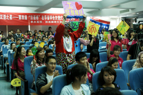 CCTV“汉语之星”大赛由中央电视台与国家汉办/孔子学院总部联合主办。参赛对象为非中国籍、母语为非汉语的在华留学生。大赛已于2008年—2010年连续成功举办三届。我校是第三次承办西安赛区预赛。本次比赛场地宽敞漂亮,观众爆棚,现场气氛热烈,国汉院志愿者工作积极主动。央视节目组对我校出色的组织工作给予了高度评价。大赛将于2011年5月15日至6月3日在北京、天津、西安、郑州、哈尔滨等24个赛区、百余所知名高校进行选拔预赛。决赛将于8月在北京举行。中央电视台中文国际频道(CCTV4)将全程播出预决赛赛况。(图:冯伟 文:胡丹)