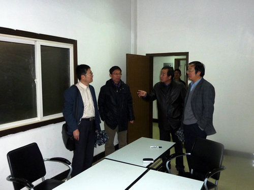 11月7日上午,校长助理党怀兴、国有资产管理处处长但锋一行冒雨来到必赢3003no1线路检测中心进行调研座谈。